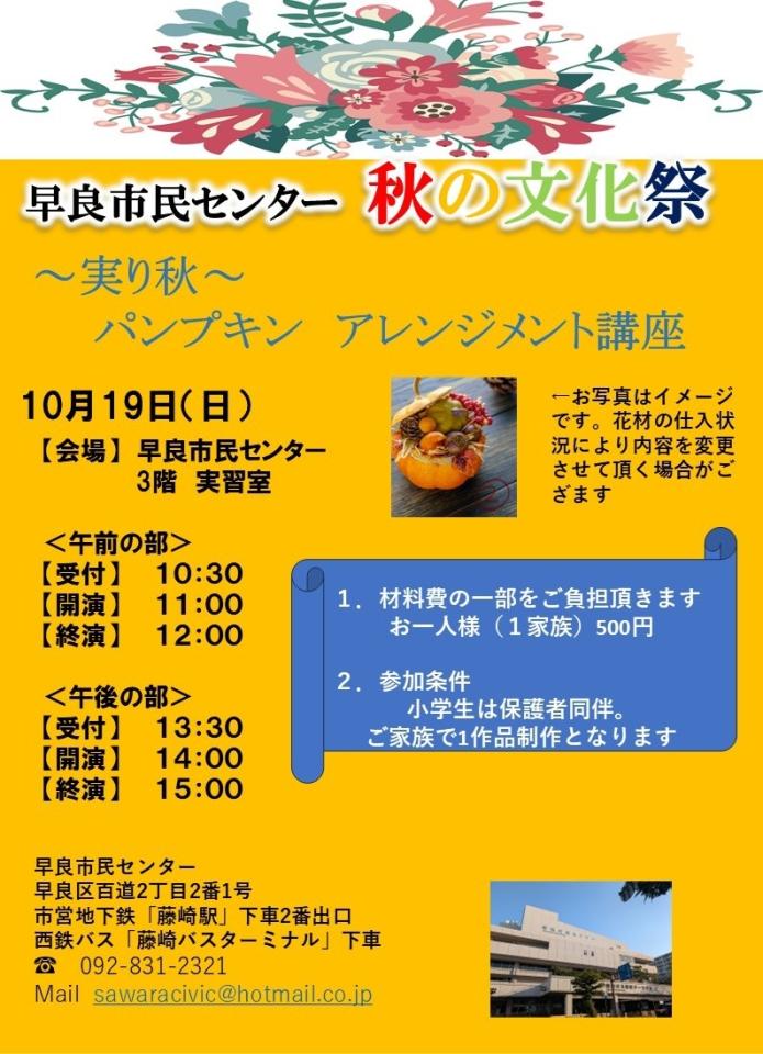 講談、落語、パンプキンアレンジメント体験は事前申込先着です。