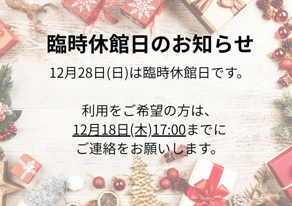 12月臨時休館日のお知らせ