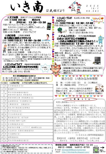 公民館からお知らせ(公民館だより10月号) | 壱岐南公民館