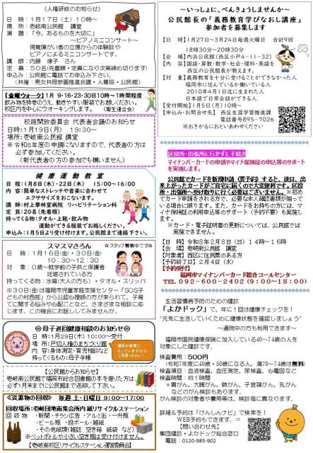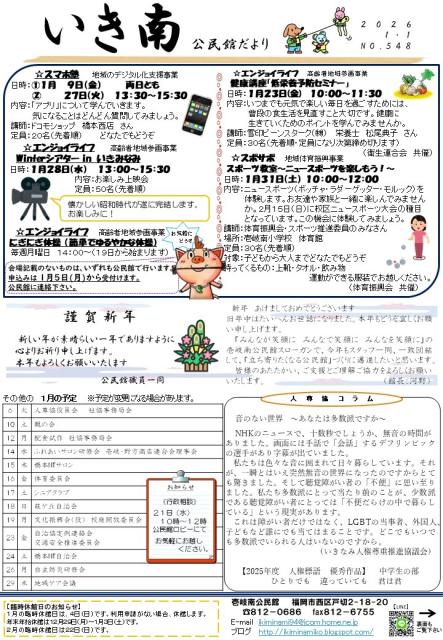 公民館からお知らせ(公民館だより1月号) NEW 壱岐南公民館 2026年01月05日 公民館だより1月号 明けましておめでとうございます。本年もどうぞよろしくお願い致します。 公民館だより1月号を発行しました。