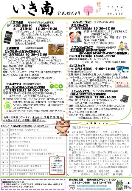 公民館からお知らせ(公民館だより3月号) | 壱岐南公民館