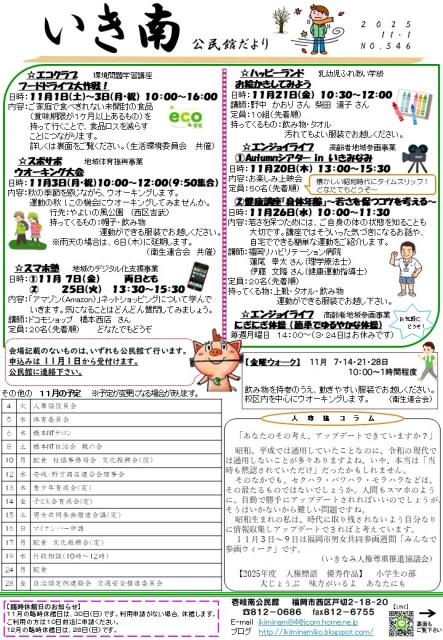 公民館からお知らせ(公民館だより11月号) | 壱岐南公民館