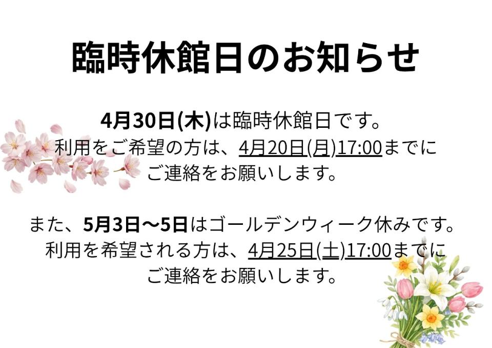 4月・ゴールデンウィーク臨時休館日 | 玄洋公民館