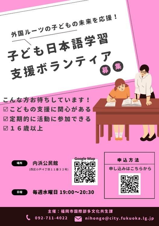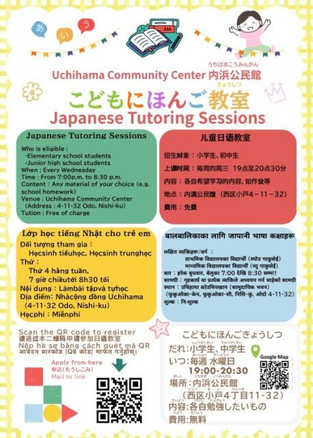 現在、内浜公民公民館では「子ども日本語教室」を開催しています。一人ひとりが「今、勉強したいこと」を自分のペースで進められる教室です。あわせて、子どもたちの学習をサポートしてくださるボランティアさんも募集中です!未来を担う子どもたちが、安心して学べる場所を一緒に作っていきましょう😊