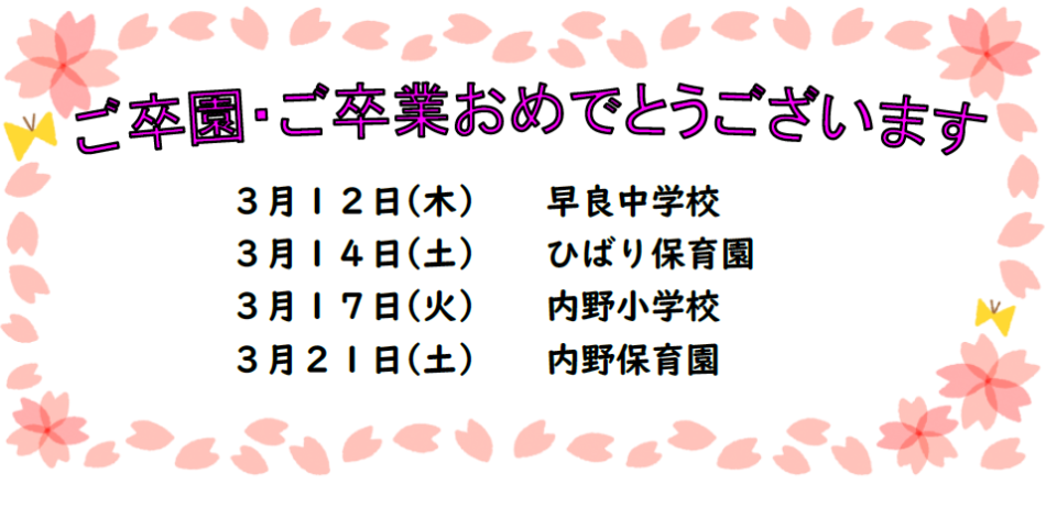 🌸ご卒園・ご卒業おめでとうございます🌸 | 内野公民館
